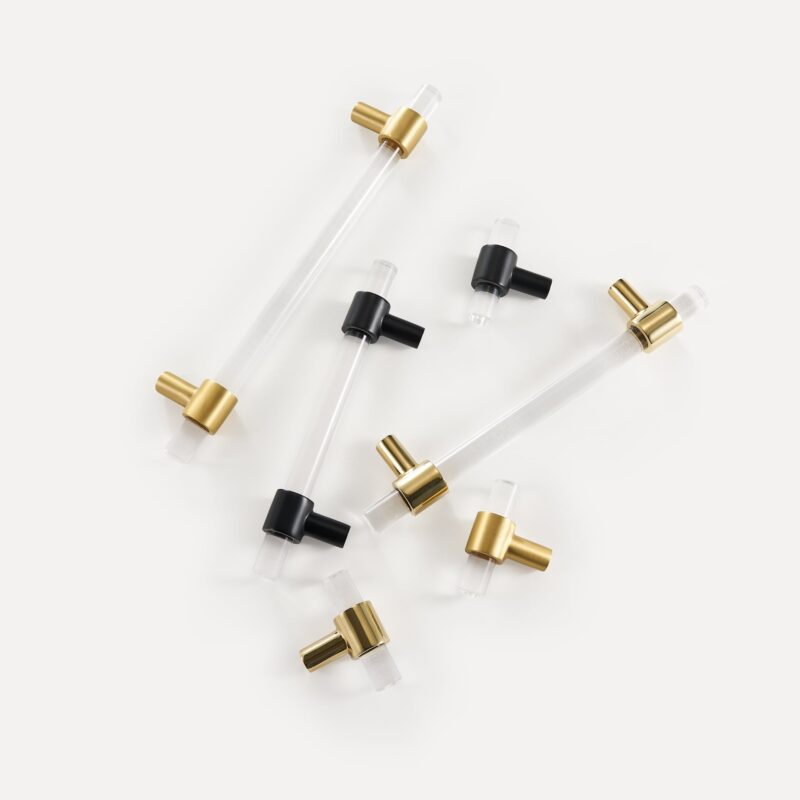 KRISTAL combina la ligereza visual del acrílico transparente con la calidez del latón macizo. La barra transparente capta y refracta la luz, añadiendo brillo y glamour a las puertas de los armarios.
