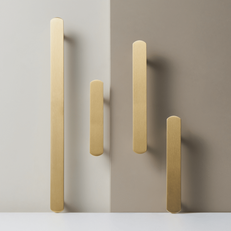 Meerdere maten en afwerkingen beschikbaar voor verschillende kasttoepassingen. Natuurlijke veroudering ontwikkelt patina na verloop van tijd. Elke maat behoudt dezelfde proportionele balans, wat zorgt voor visuele consistentie bij verschillende toepassingen.